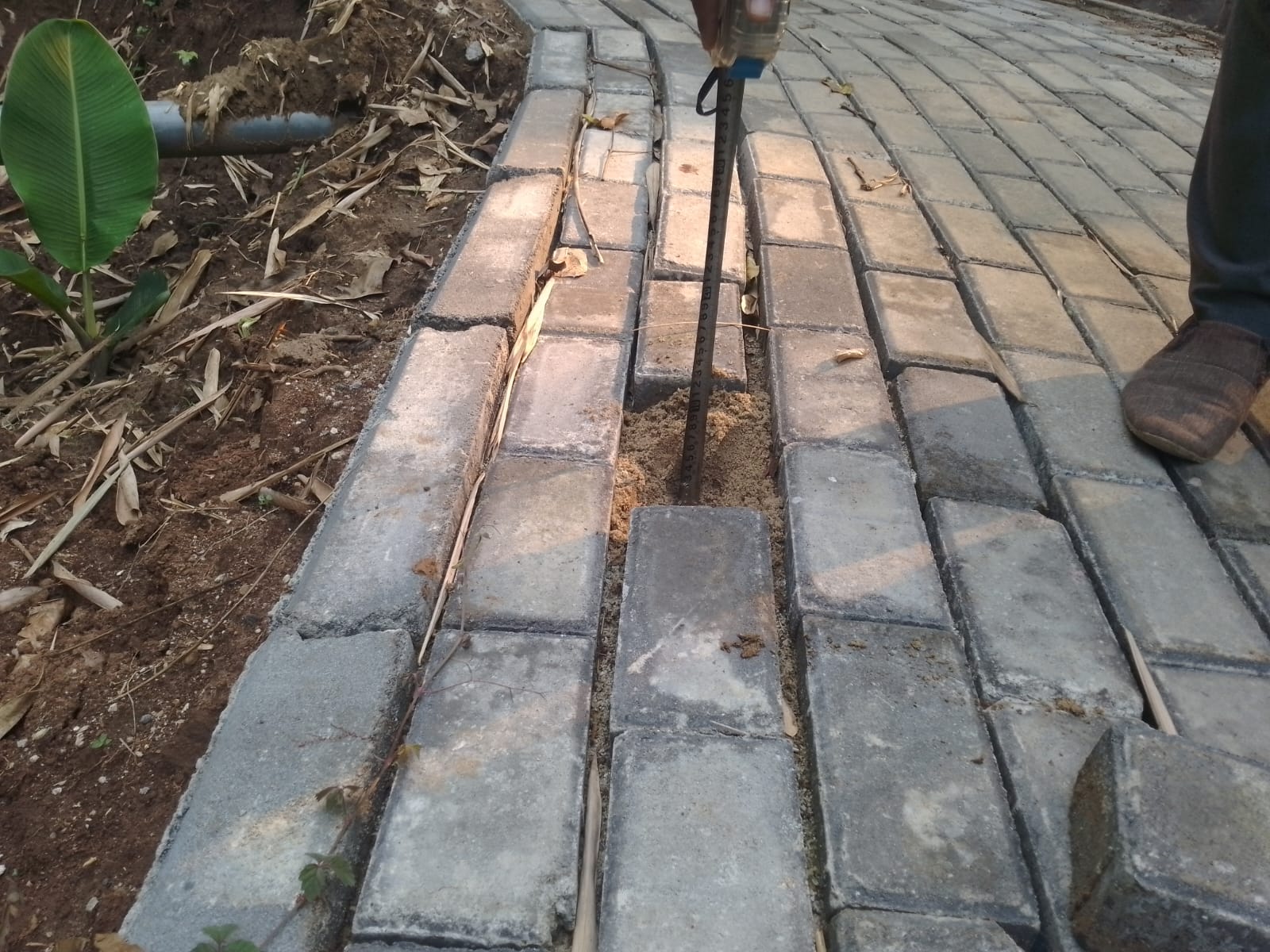 Ia menyayangkan pola pemasangan paving yang tidak sesuai dengan standar teknik.